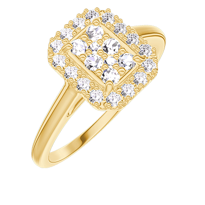 « L'ATELIER » NR. 211498Inel Aur galben 9 carate - Cluster de diamante naturale Smarald echivalent 0.5 - Halo Diamant 4.9 (44)