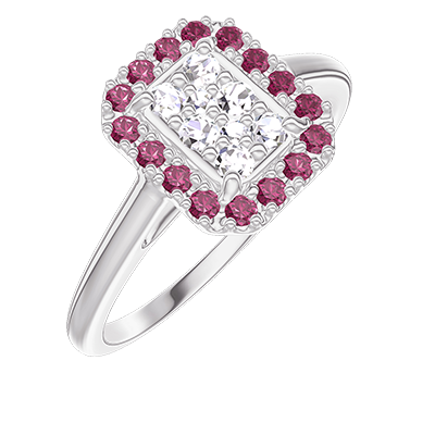 « L'ATELIER » Nº211515Inel Aur alb 18 carate - Cluster de diamante naturale Smarald echivalent 0.5 - Halo Rubin 4.9
