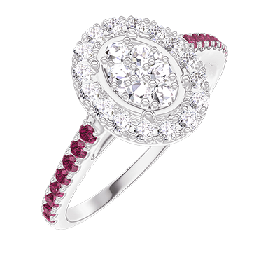 « L'ATELIER » NR. 211555Inel Aur alb 18 carate - Cluster de diamante naturale Oval echivalent 0.5 - Halo Diamant - Încrustare Rubin 4.8