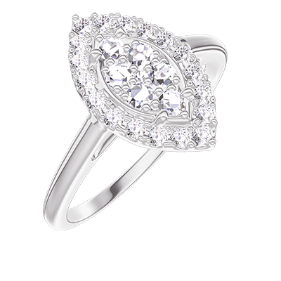 « L'ATELIER » Nº211643Inel Aur alb 18 carate - Cluster de diamante naturale Marquise echivalent 0.5 - Halo Diamant