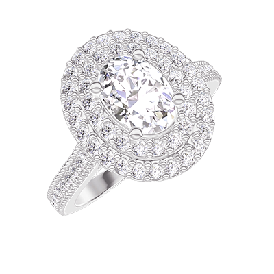 « L'ATELIER » NR. 402463Inel Aur alb 9 carate - Diamant Oval 0.5 carate - Halo Diamant - Încrustare Diamant