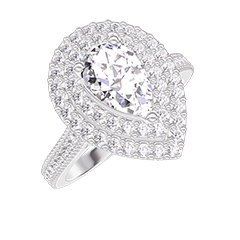 Inel Aur alb 9 carate - Diamant Pară 0.5 carate - Halo Diamant - Încrustare Diamant