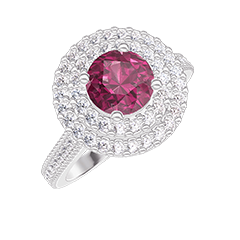« L'ATELIER » NR. 403621Inel Aur alb 9 carate - Rubin Rotund 0.5 carate - Halo Diamant - Încrustare Diamant