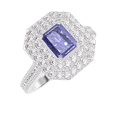 « L'ATELIER » NR. 405215Inel Aur alb 9 carate - Safir albastru Smarald 0.5 carate - Halo Diamant - Încrustare Diamant