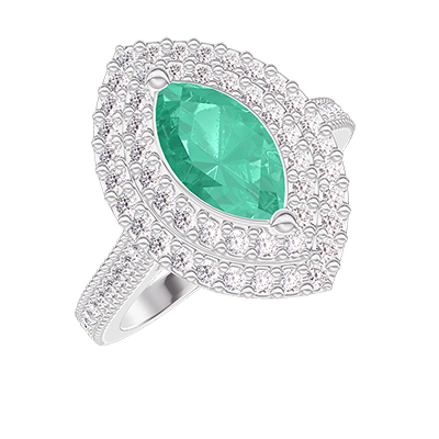 « L'ATELIER » NR. 406511Inel Aur alb 18 carate - Smarald Marquise 0.5 carate - Halo Diamant - Încrustare Diamant