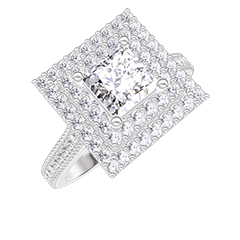 « L'ATELIER » NR. 406671Inel Aur alb 18 carate - Diamante de laborator Princess 0.5 carate - Halo Diamante de laborator - Încrustare Diamante de laborator