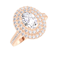 « L'ATELIER » NR. 413236Inel Aur roz 9 carate - Diamante de laborator Oval 0.5 carate - Halo Diamante de laborator - Încrustare Diamante de laborator