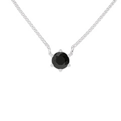 Colier Aur alb 9 carate - Diamant negru rotund 0.3 carate - Lanţ Veneţian