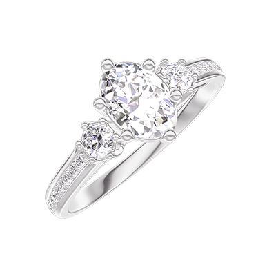 « L'ATELIER » NR. 424787Inel Aur alb 9 carate - Diamante de laborator Oval 0.5 carate - Pietre laterale Diamante de laborator - Încrustare Diamante de laborator