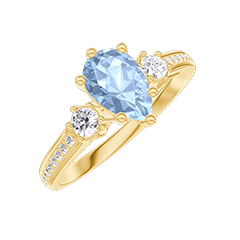 Inel Aur galben 9 carate - Topaz albastru Pară 0.5 carate - Pietre laterale Diamant - Încrustare Diamant