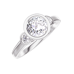 Inel Aur alb 9 carate - Diamante de laborator rotund 0.5 carate - Pietre laterale Diamante de laborator