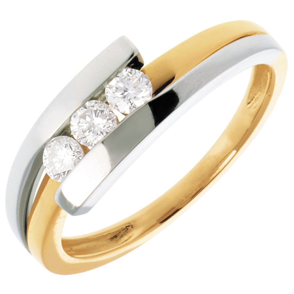 Trilogie Bipolar - 3 diamante de 0.28 carate - aur alb şi aur galben de 18K