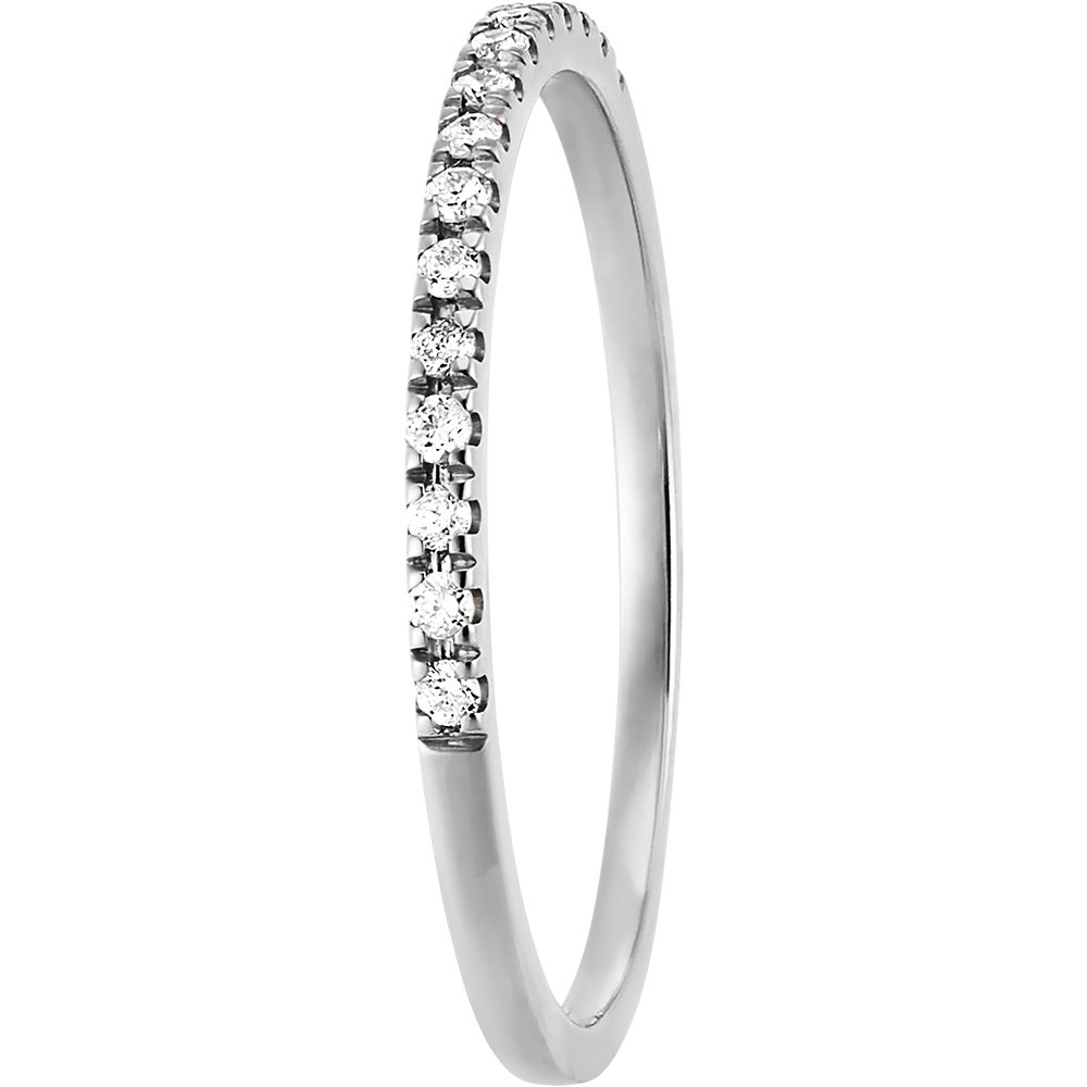 O verighetă din aur alb, elegantă și atemporală, încrustată cu diamante delicate. Această verighetă este ideală pentru a însoți un inel de logodnă sau pentru a fi purtată singură.