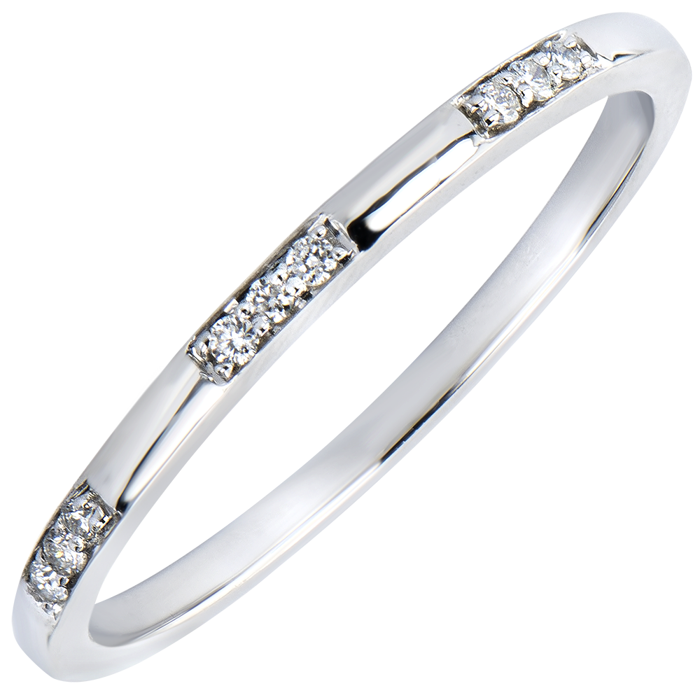 O verighetă subliniată de 3 trilogii de diamante pentru o strălucire blândă şi delicată.