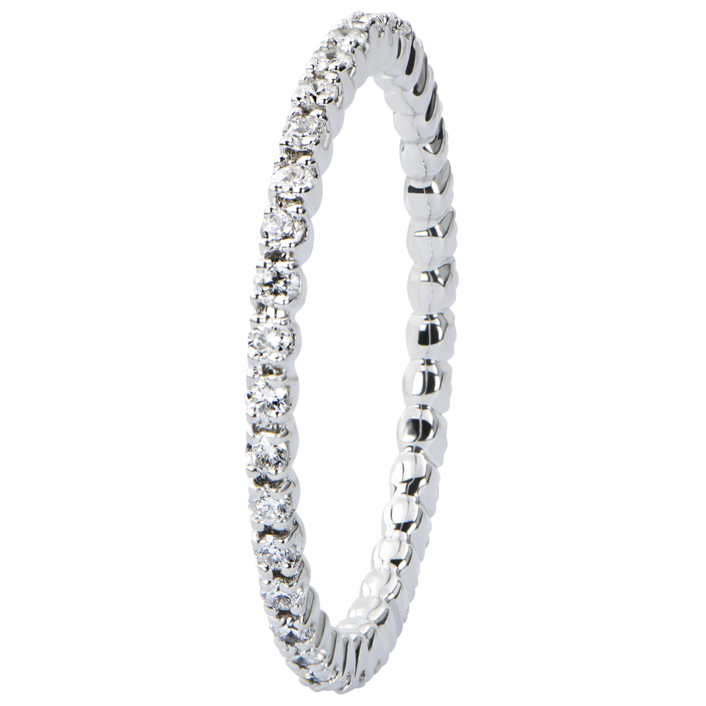 O verighetă încoronată de un pavaj de 37 de diamante, încrustate tip gheruţă, fapt ce o transformă într-o bijuterie esenţială.