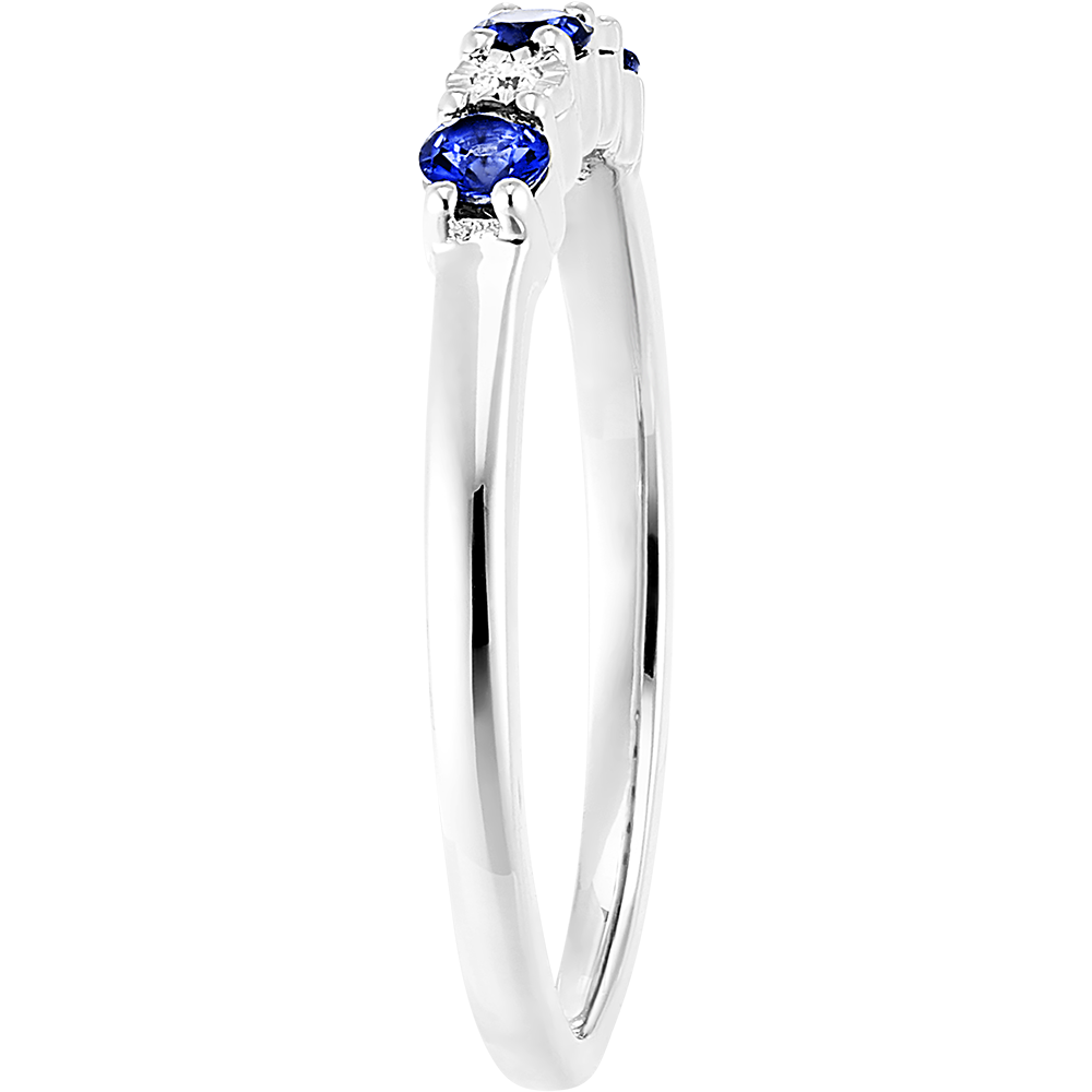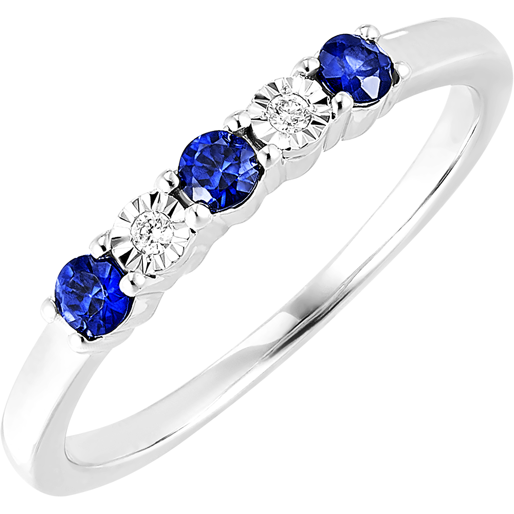Un inel din aur alb încrustat cu safire și diamante. O bijuterie clasică și atemporală în același timp ce adaugă o notă de culoare.