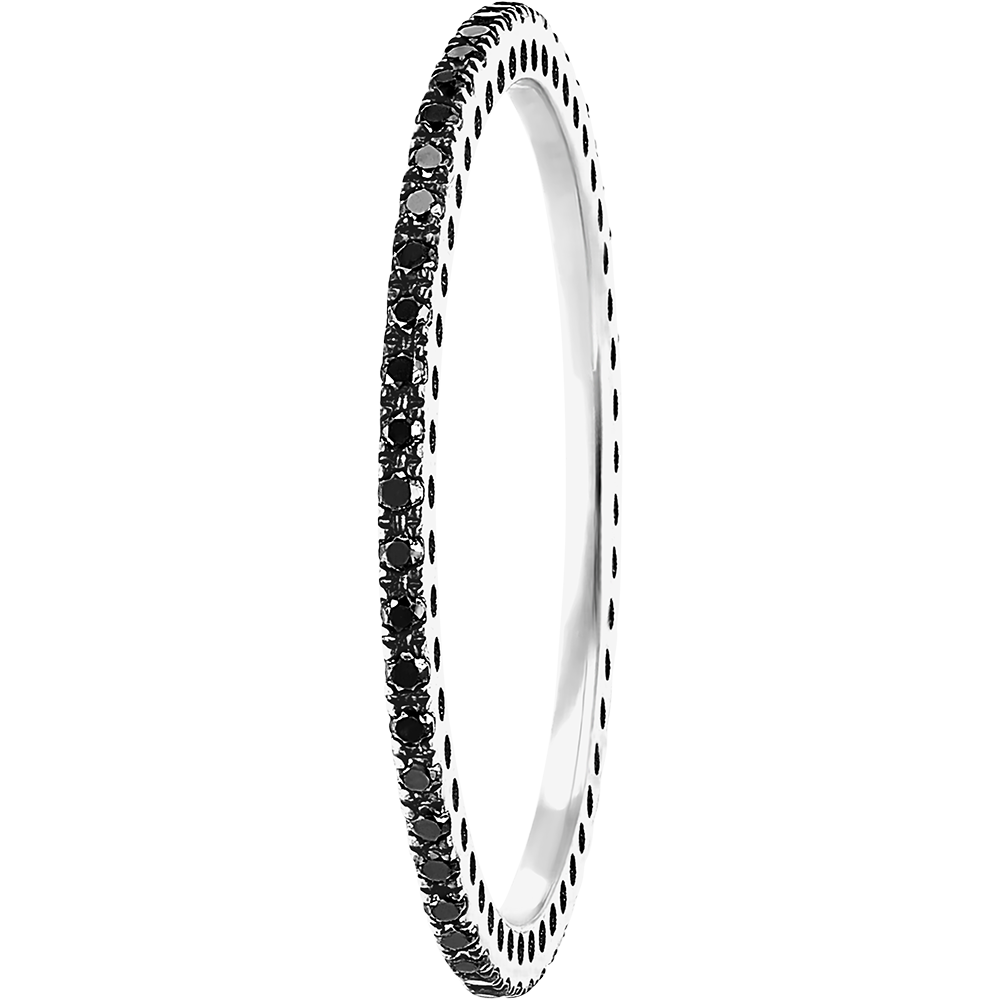 Un inel subțire și delicat din aur alb, încrustat cu diamante negre - tur complet. Această verighetă este ideală pentru a însoți un inel de logodnă sau pentru a fi purtată singură.