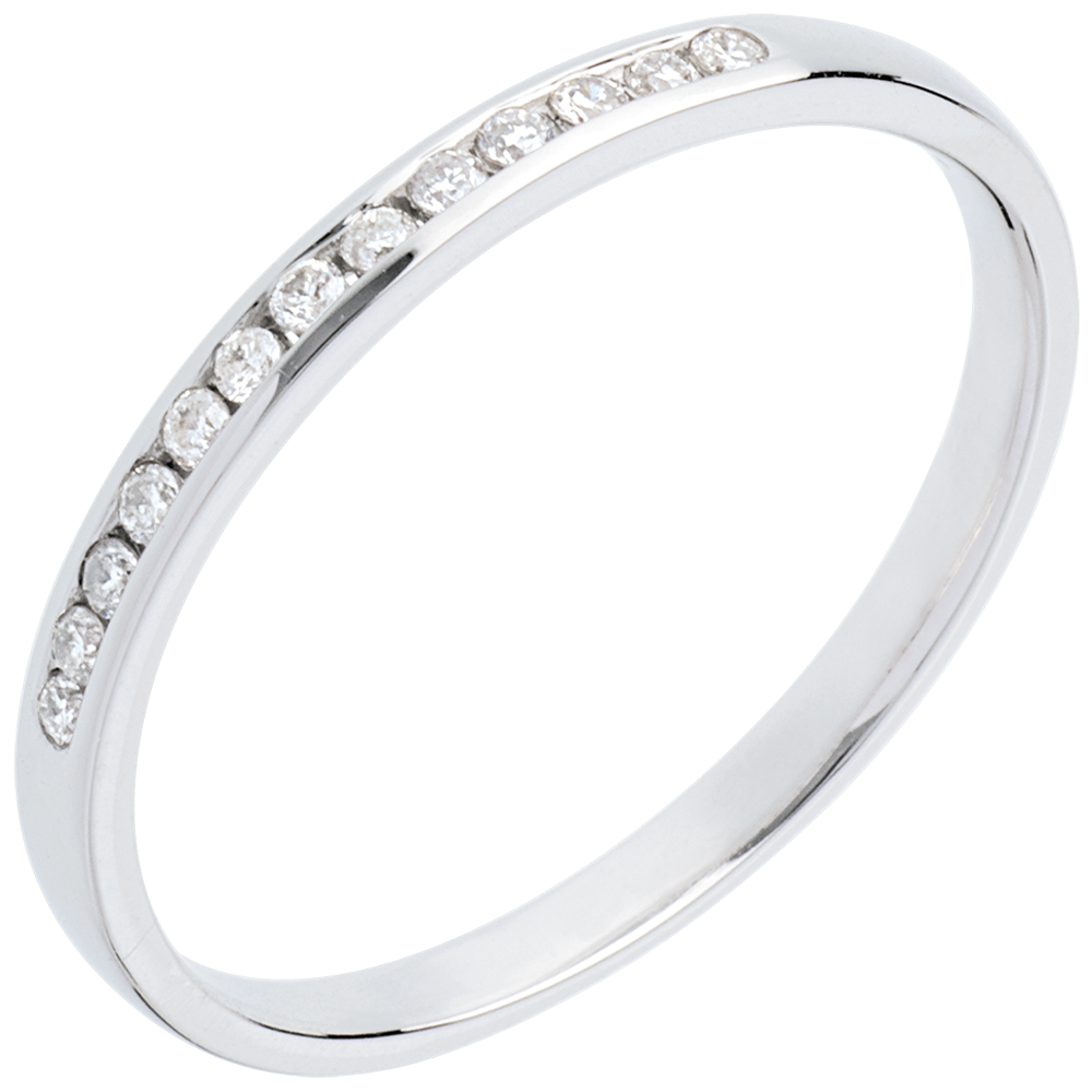 Verighetă aur alb de 9K semi pavată - setare bară - 13 diamante