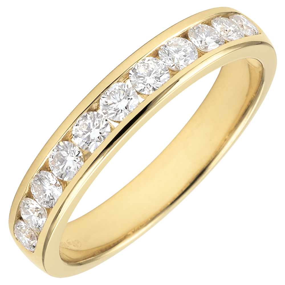 Verighetă aur galben de 18K semi pavată - setare bară - 0.5 carate - 11 diamante