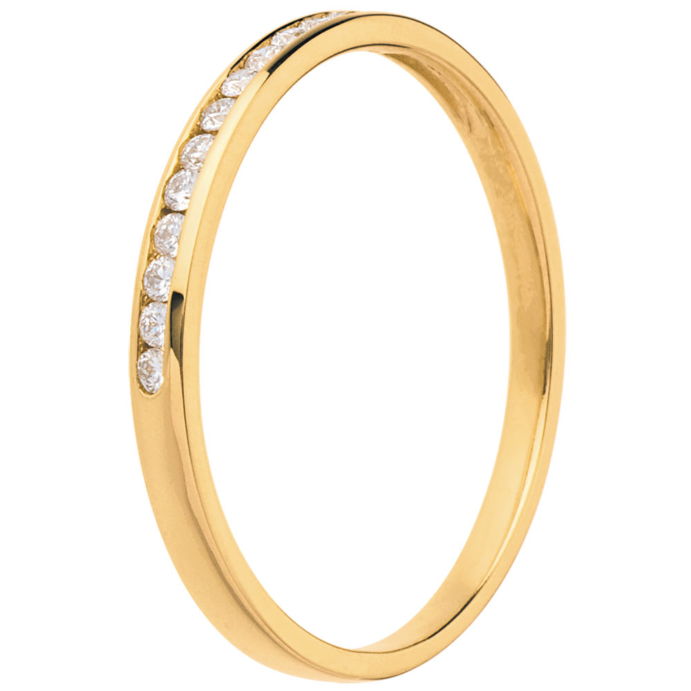 Verighetă aur galben de 9K semi pavată - setare bară - 13 diamante