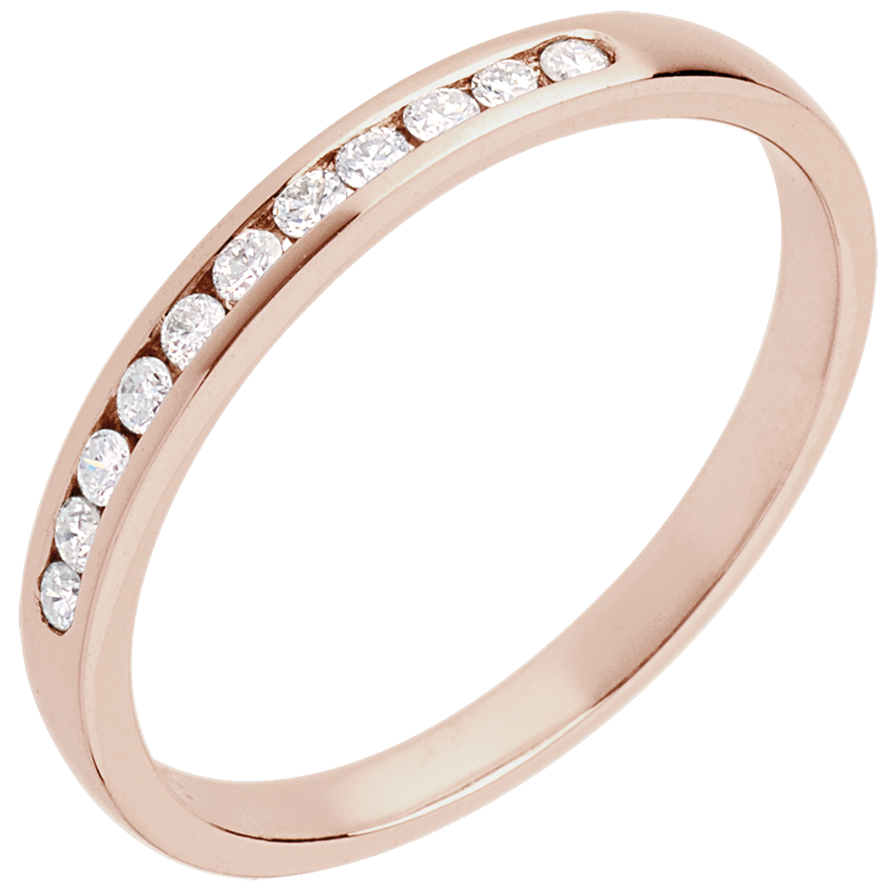Verighetă aur roz de 18K semi pavată - setare bară - 11 diamante