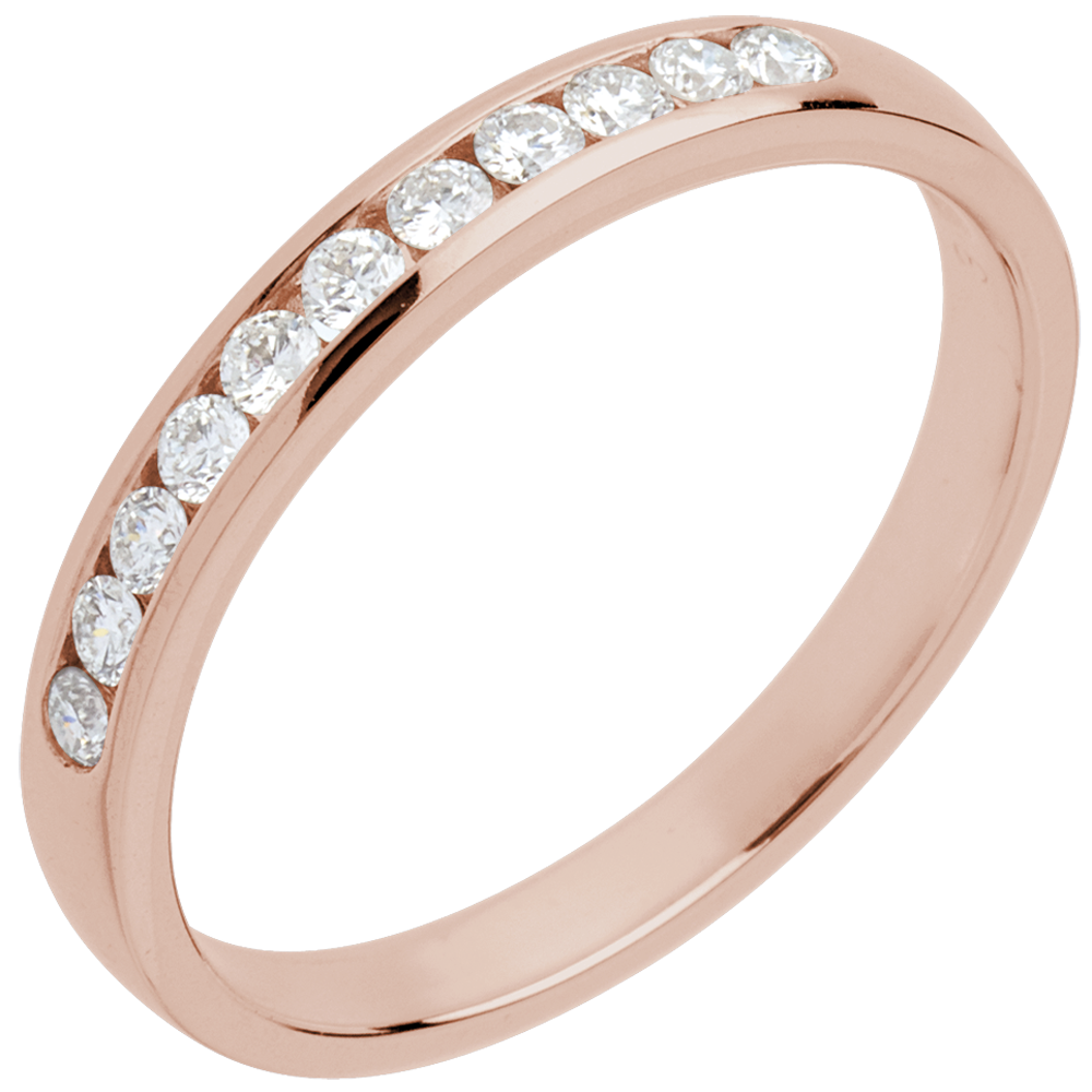 Verighetă aur roz de 18K semi pavată - setare bară - 11 diamante