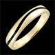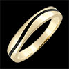 Un inel bombat din aur traversat de un val de lac negru formând Verigheta Clar Obscur modernă şi masculină.