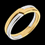 Acest inel din aur masiv, fără pietre, combină eleganţa şi modernitatea prin duo-ul de metale preţioase. Cu o greutate minimă de 4,6 g, oferă o prezenţă plăcută la deget.