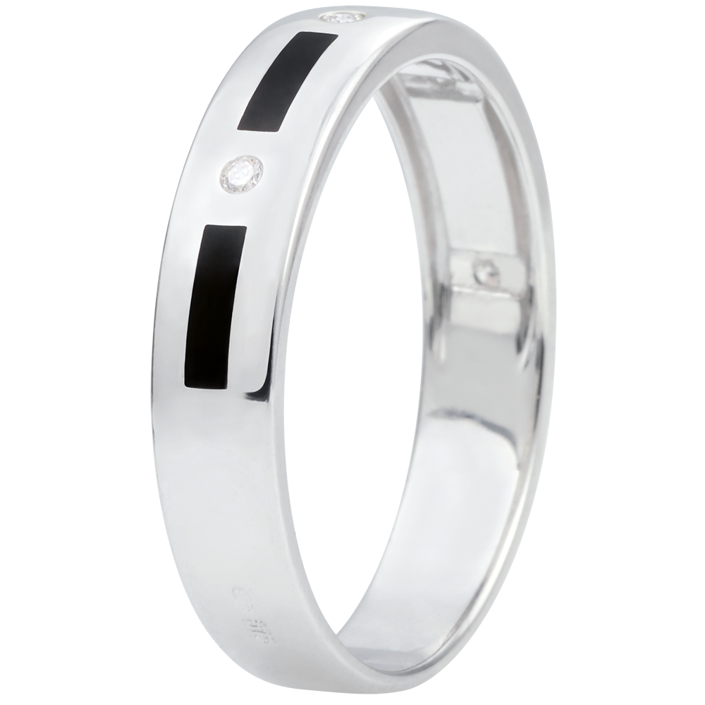 Verighetă Clar Obscur - linii lac negru - 4 diamante - 5mm - aur alb de 9K