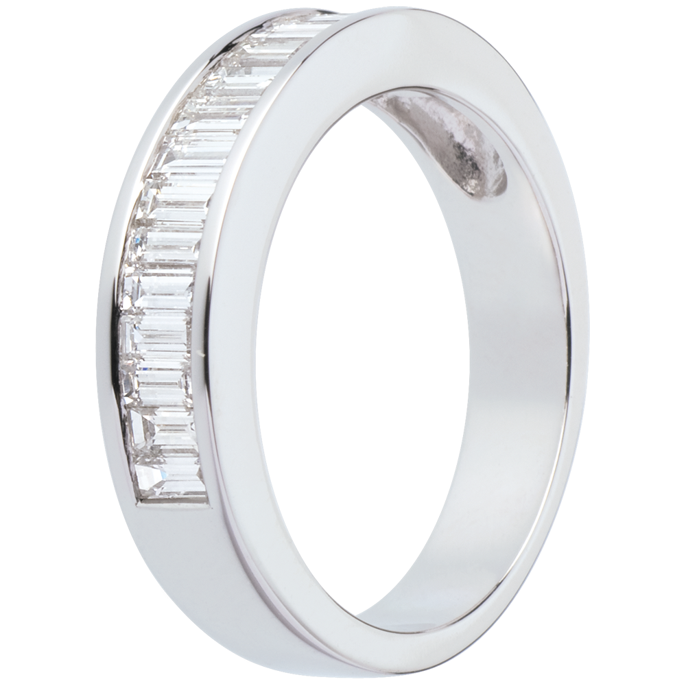 Verighetă din aur alb de 18K semi pavată - Diamante taiate baghetă setate bară - 1 carat
