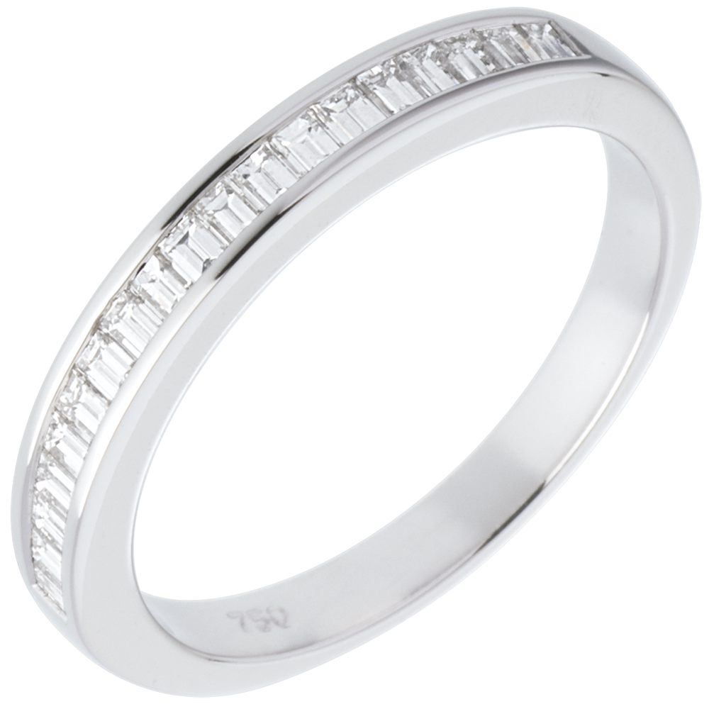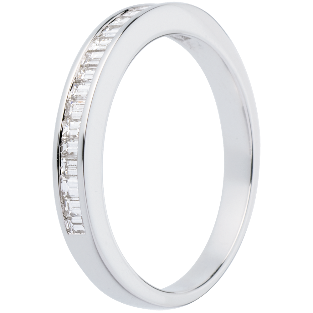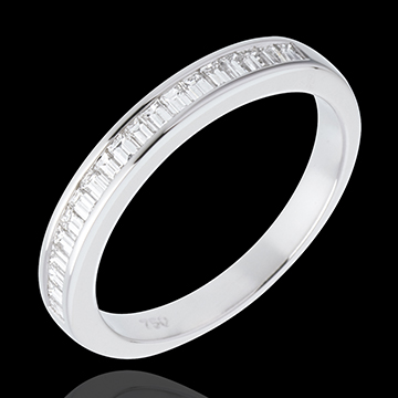 Verighetă din aur alb de 18K semi pavată - setare bară - 0.3 carat