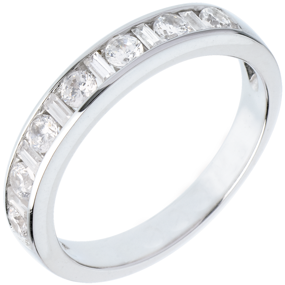 Verighetă din aur alb de 18K semi pavată - setare bară - 0.65 carat - 8 diamante