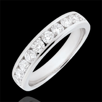 Verighetă din aur alb de 18K semi pavată - setare bară - 0.67 carat - 10 diamante