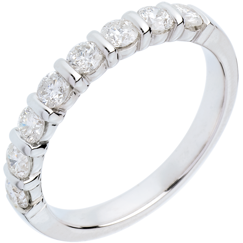 Verighetă din aur alb de 18K semi pavată - setare canal - 0.65 carate - 8 diamante
