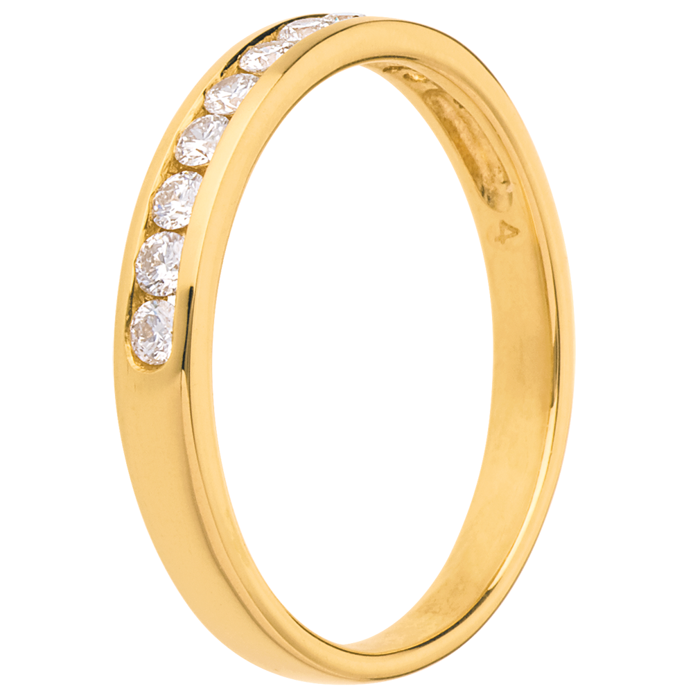 Verighetă din aur galben de 18K semi pavată - setare bară - 0.25 carate - 10 diamante