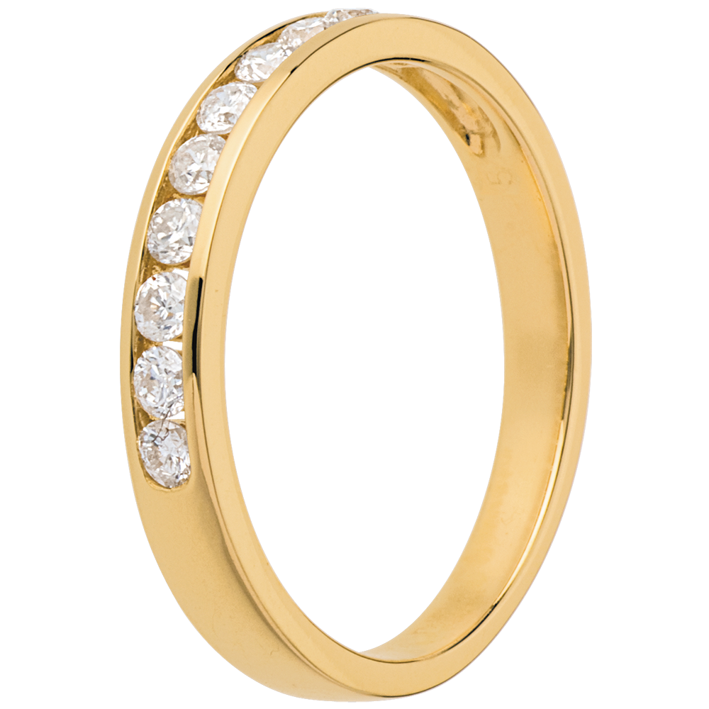 Verighetă din aur galben de 18K semi pavată - setare bară - 0.3 carate - 10 diamante