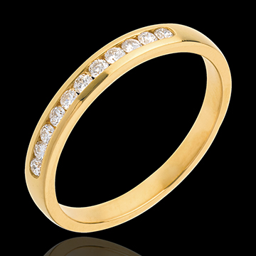 Verighetă din aur galben de 18K semi pavată - setare bară - 11 diamante