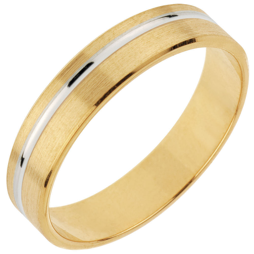 un inel din aur galben este imprimat cu un fir de aur alb pentru o uniune senină