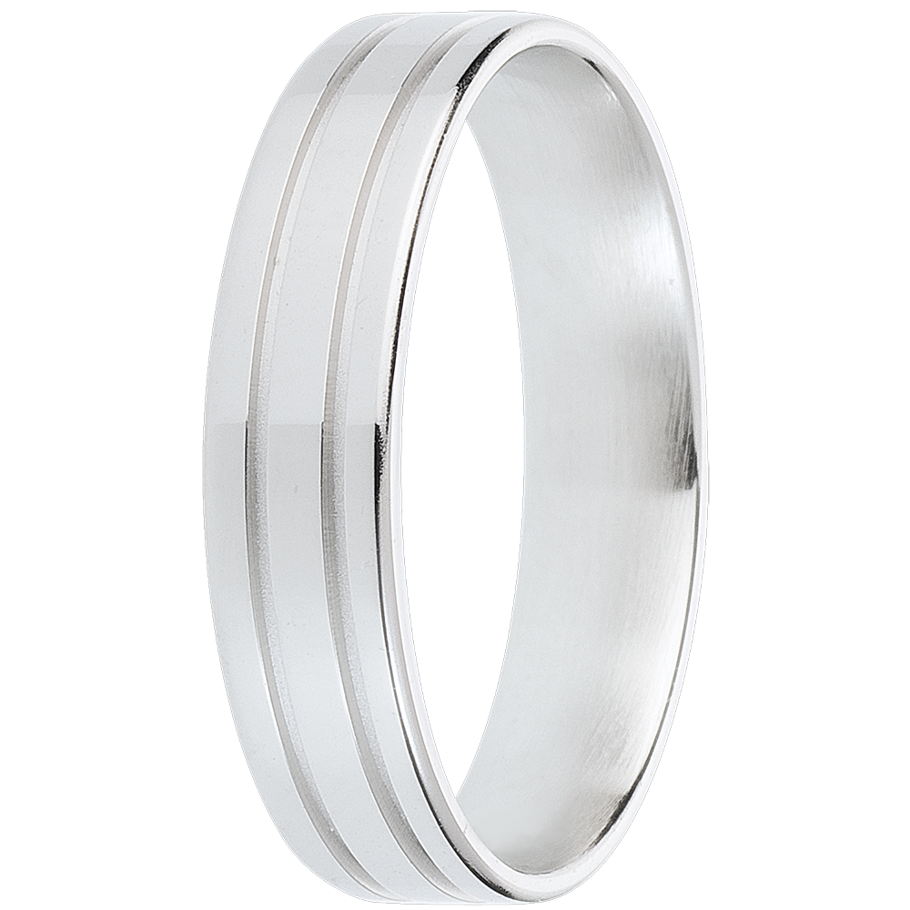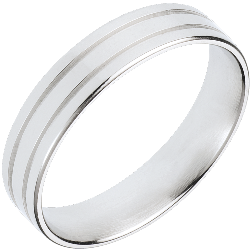 Puternică şi sobră, această verighetă din aur alb este bărbătească şi modernă
