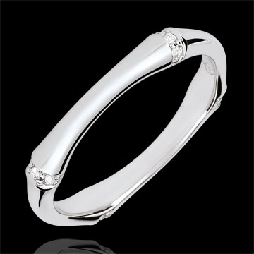 O tulpină de bambus suplă şi totuşi solidă se metamorfozează într-un inel etern din aur alb, încrustat cu diamante.