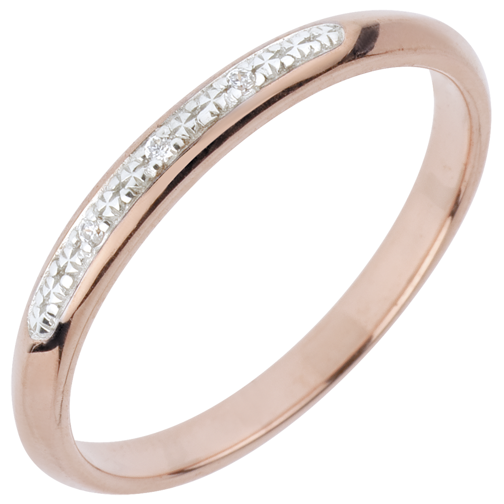 O verighetă romantică din aur roz pavat de diamante tăiate briliant în aurul alb.