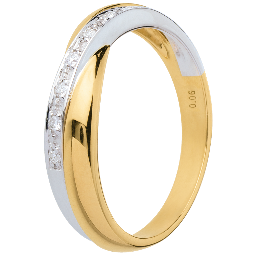 O verighetă din aur galben încadrată de un inel din aur alb semi pavat. Un aliaj plin de echilibru şi de armonie.
