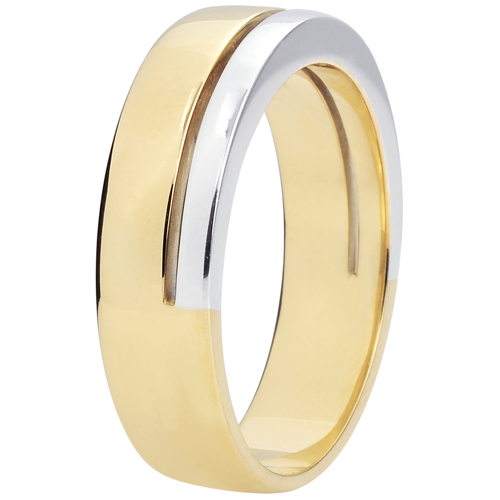 Verighetă Olympia - Model mare - bicoloră - aur alb şi aur galben de 18K