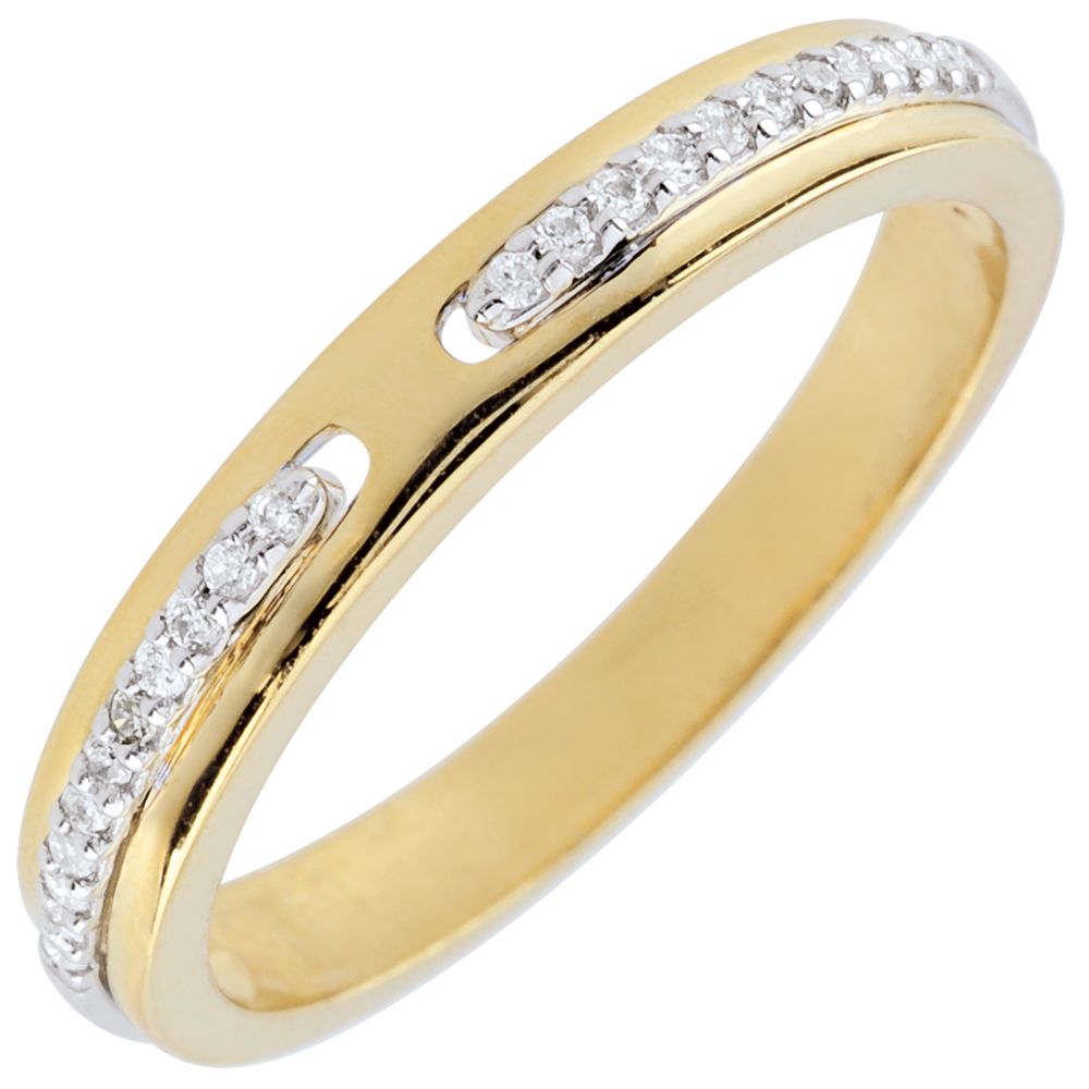 Verighetă Promisiune - două nuanţe de aur şi diamante - model mic - aur alb şi aur galben de 18K
