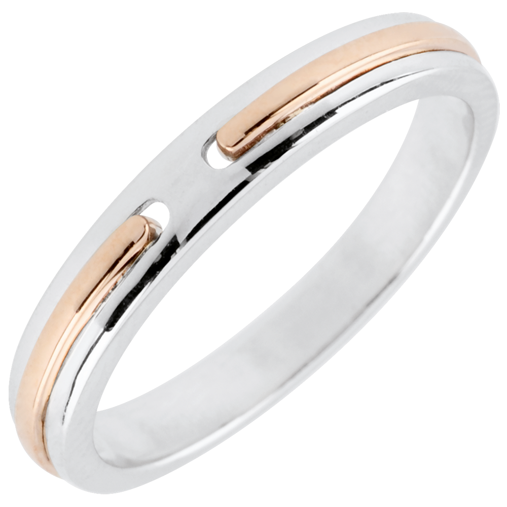 Verighetă Promisiune - model mic - aur alb şi aur roz de 18K
