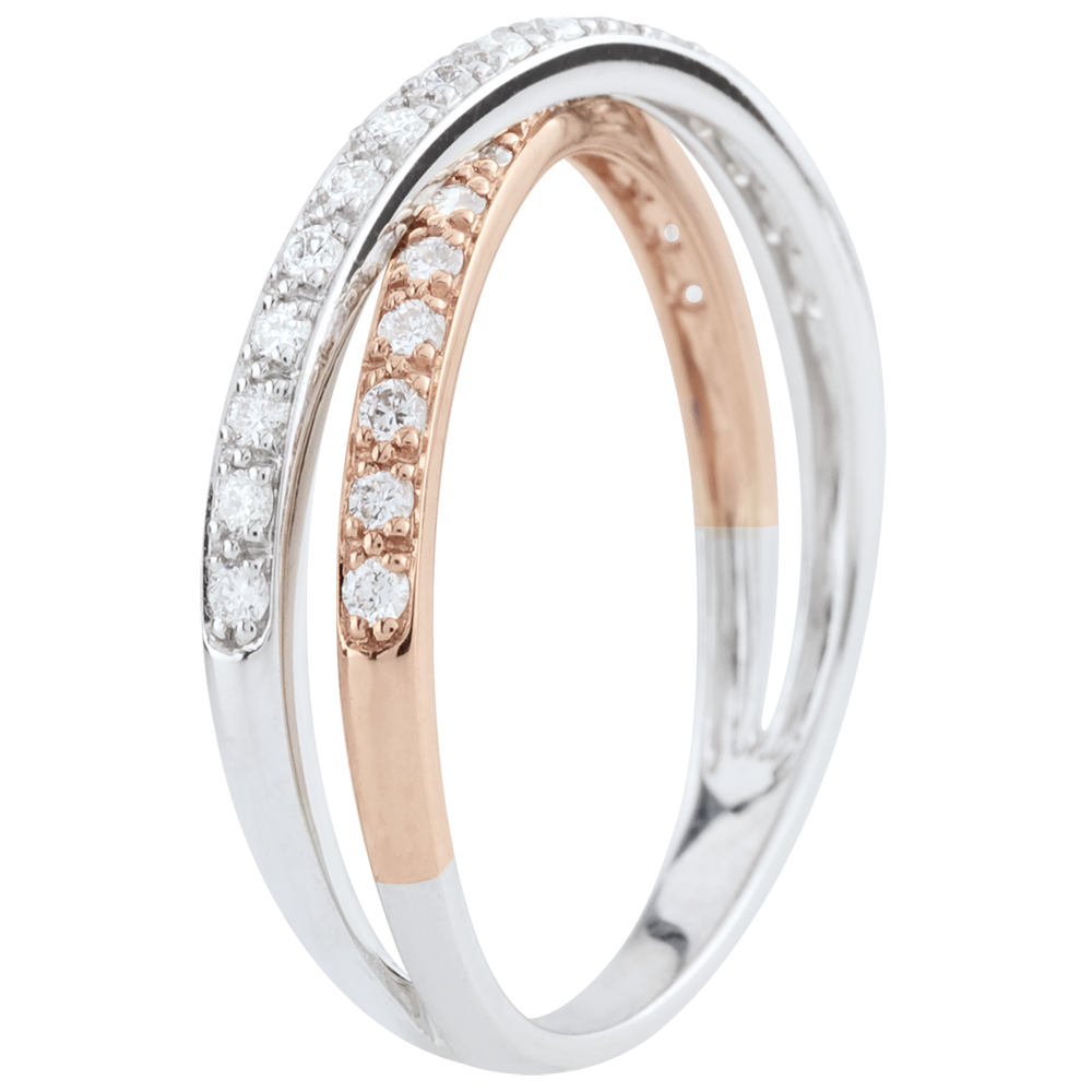 Verighetă Saturn Duo diamant dublu - aur alb şi aur roz de 18K