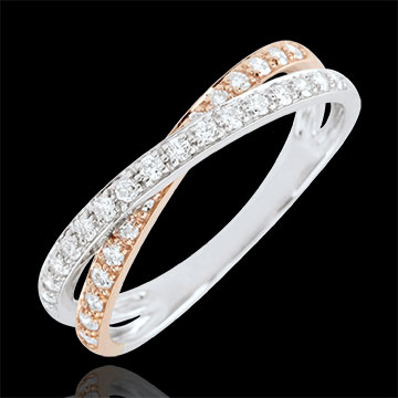 Verighetă Saturn Duo diamant dublu - aur alb şi aur roz de 9K