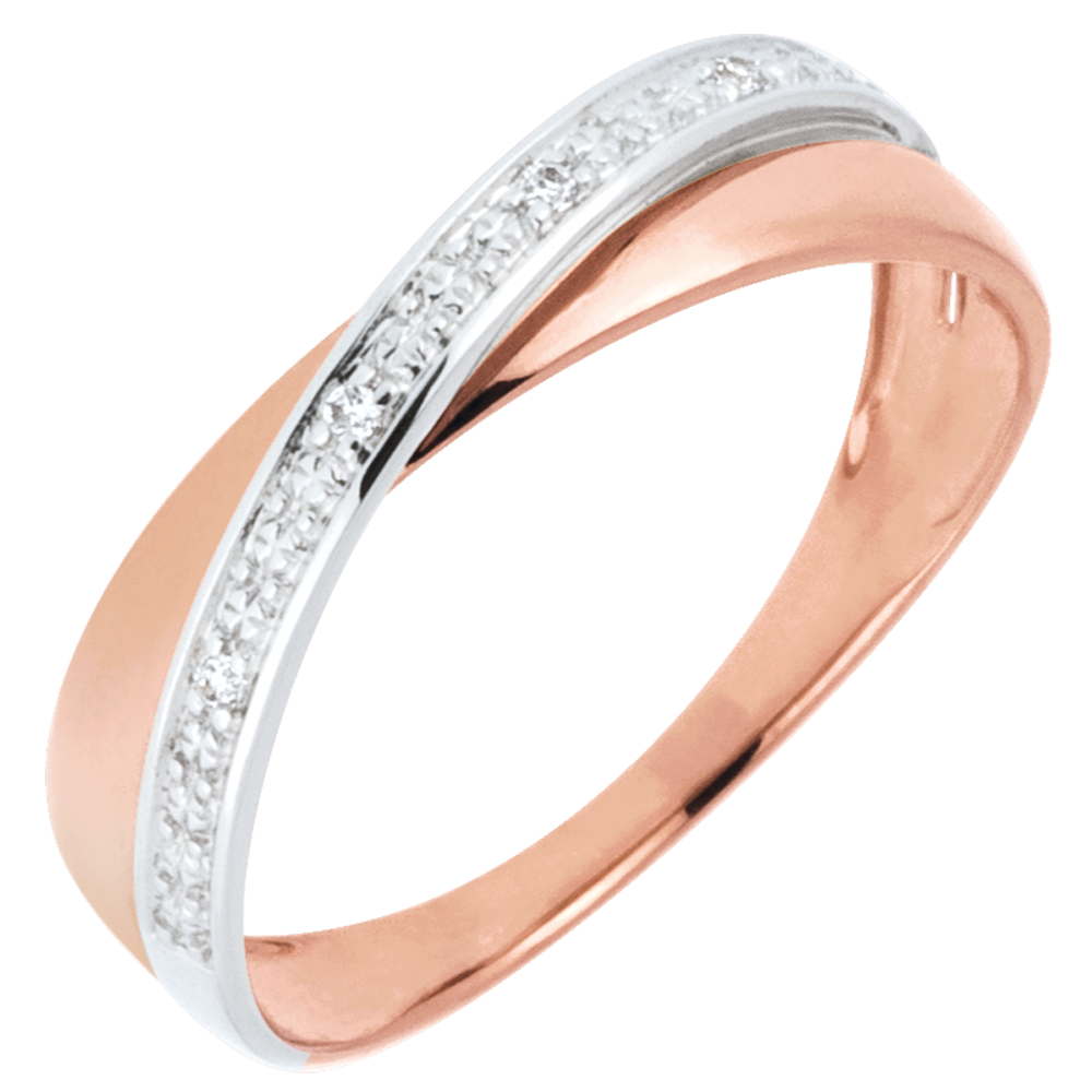 Verighetă Saturn Duo - diamante - aur alb şi aur roz de 18K