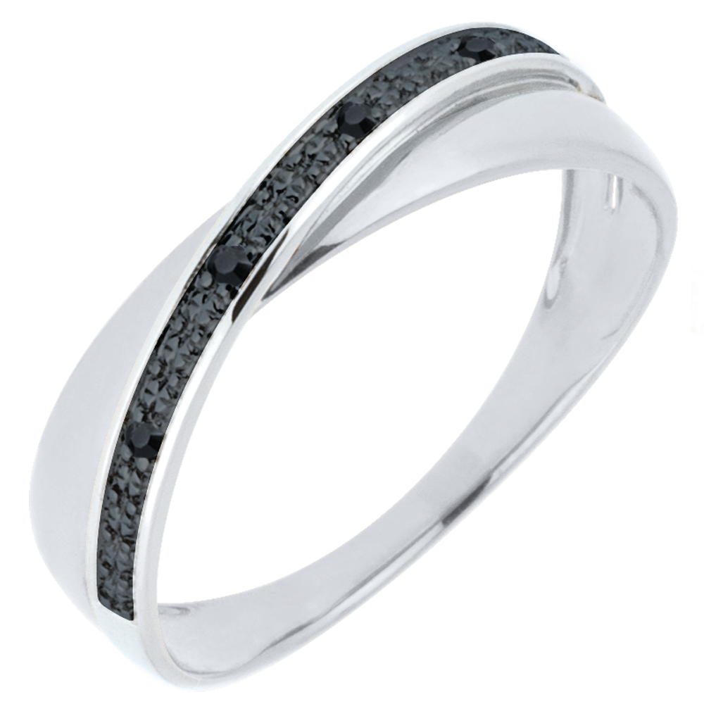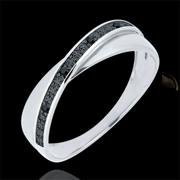Verighetă Saturn Duo - diamante - diamante negre - aur alb de 18K