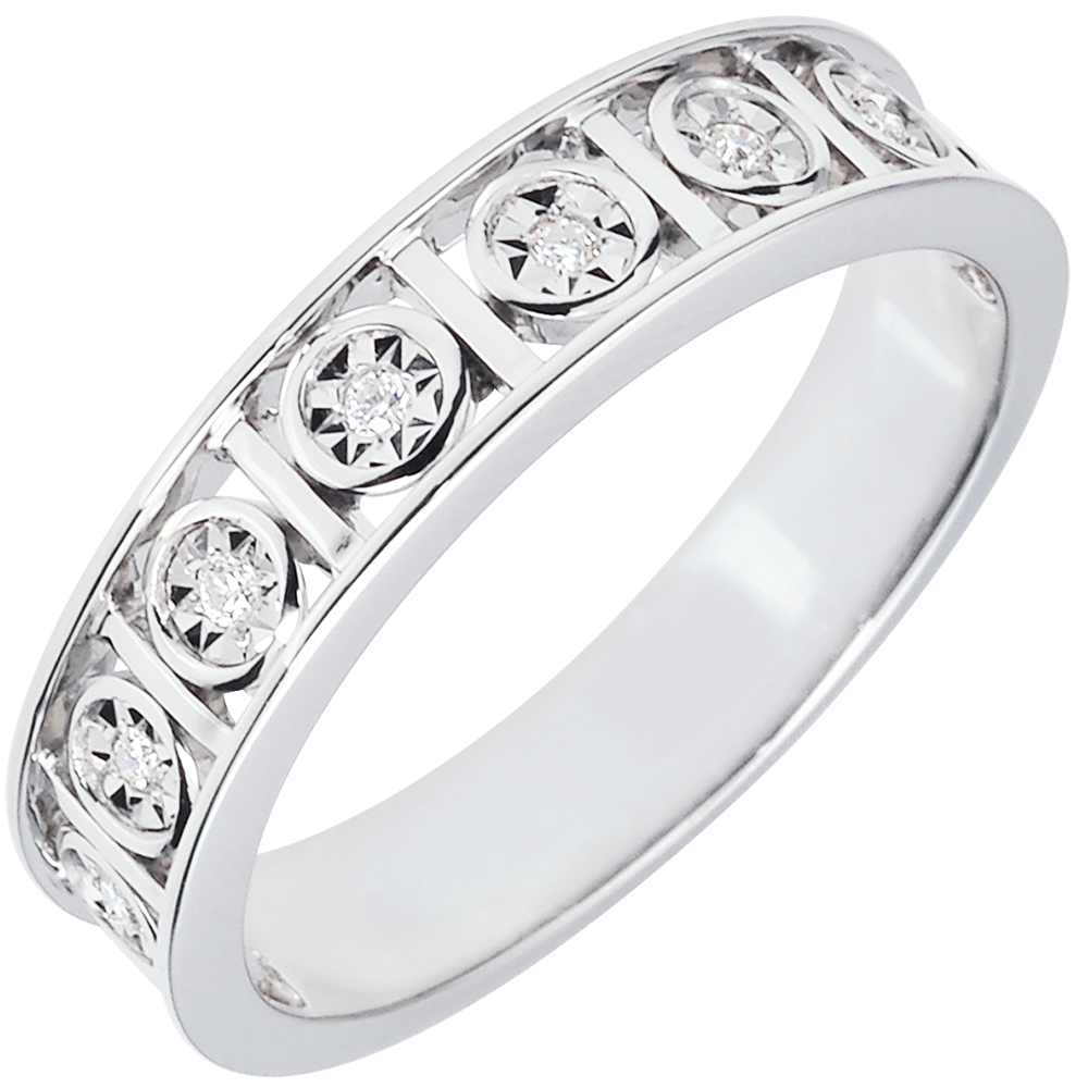 Verighetă Destin - Secret de Iubire - 9 Diamante - aur alb de 18K